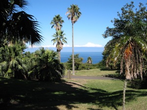 We went to Izu Ohshima, which means "Izu Big Island". There is a chain of volcanic islands running south from the Japanese mainland quite close to us, known as the Izu islands. They used to be part of Izu, now the eastern part of Shizuoka Prefecture, but they were administratively transferred to Tokyo some time ago, with the result that all the islands are formally part of Japan's capital. It's as if the Scilly Isles were part of Greater London, rather than Cornwall. Being relatively small islands (Ohshima is the biggest at ninety square kilometres), they are very different from most of Tokyo in atmosphere, appearance, and, indeed, just about every respect.