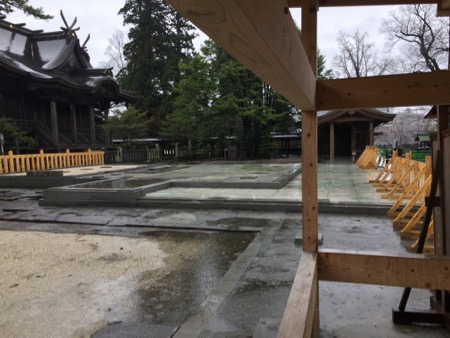 祈願祭が終わったら、神職とちょっと話すことができた。拝殿の再建には4、5年がかかる見込みだそうだが、文化財である楼門の再建には10年程度になるという。やはり、文化財の価値を保護するために、まず解体して、そして丁寧に再建しなければならないので、予想には難しくない。復興の進歩を見るためにも、またお参りしたいのである。
