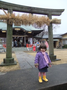 だが、太鼓が鳴り始めると、真由喜が「怖い!怖い!」と言いながら、逃げ出そうとした。抱いて、和んだが、やはり社殿に近づきたくなかったようだった。だから、今年私は神事をちゃんと拝見できなかったが、真由喜と一緒の時間を過ごしたので、良かった。神事の内容は、去年描写したので、今年省く。今日の仕事はちょっと忙しいし。
