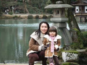 びっくりするほどいい庭園だった。桜はまだ早かったが、梅は満開だったので、梅林のところは大変奇麗だった。前田家の家紋は、梅紋だったそうだが、かなり広い梅林が兼六園にあることは、それに由来するのだろう。散策してから、時雨亭(しぐれてい)という建物をちょっとお茶を飲んで、眺めを楽しんだ。一方、真由喜の楽しみは、歩道に敷かれた小さい玉砂利を持って、水等に落とすことだった。すると、「ゴミを捨てたね」と嬉しそうに言った。「それはゴミではないけれども」と言っても、効果はなかったので、結局無理矢理持って、イタズラを防いだ。