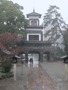 最初に訪れたのは、尾山神社だった。この神社は、加賀藩の初代大名、前田利家公を祀る。著名なポイントは、珍しい神門だ。写真で見えるように、普通の神門と大きく異なるし、和風、洋風、それに中華風な建築も混じっている。案内によると、元々灯台の機能もあったそうだから、ギヤマンが張っているのは、光に特徴を与えた。確かに神社に見たことはない形だ。この神門は、明治8年に完成されたそうだが、もう国の重要文化財になっている。
