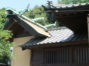 建築でもう一つ興味深いことに気づいた。社殿は八幡作りだったが、八幡神社だからそれは驚くほどではない。しかし、珍しいことに、拝殿は瓦葺きだ。神社の屋根は、お寺の屋根と違って、瓦葺きを避けることは普通だ。藁葺きもあるし、板葺きも多いが、瓦葺きは寺建築の特徴の一つだと言われる。写真をチェックしたら、先に参拝した大島八幡神社の社殿も瓦葺きだから、川崎の地域の慣習だったのだろう。中島八幡神社で気づいたことは、拝殿は瓦葺きだったものの、本殿は銅板葺きだということだ。この組み合わせはうっかりすることではないので、きっと理由があった。機会があれば、ちょっと聞きたいと思うが、どうやって聞いたらいいかまだ分からない。さらに、誰に聞いていいかも分からない。稲毛神社の社務所か、中島八幡神社の氏子の総代か。